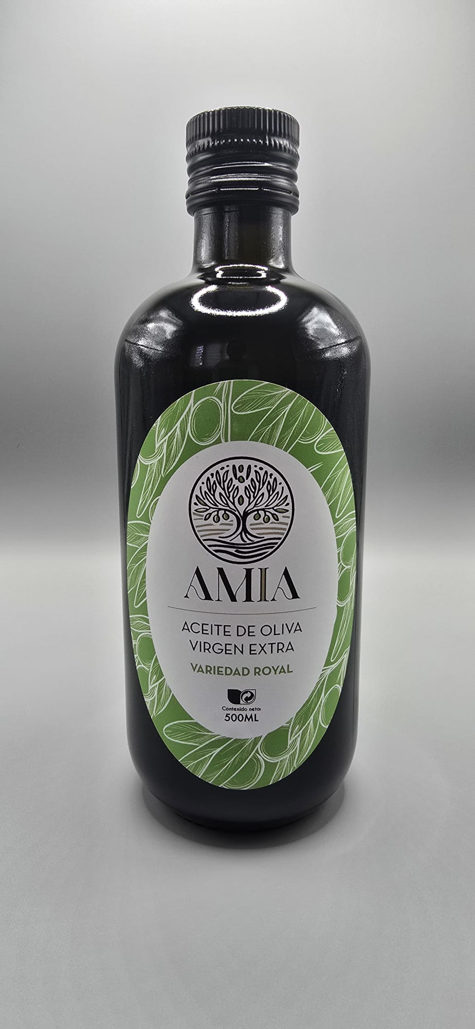 ACEITE DE OLIVA VIRGEN EXTRA  ROYAL | Aceite premium de una calidad intachable, unos aromas a fruta fresca, hierba recién cortada, tomatera y con una valoración organoléptica radiante. En boca es suave con matices de fruto de seco, como la almendra y la nuez. A este producto le añadimos un envase acorde a su calidad con diseño específico para este producto y de personalidad propia.